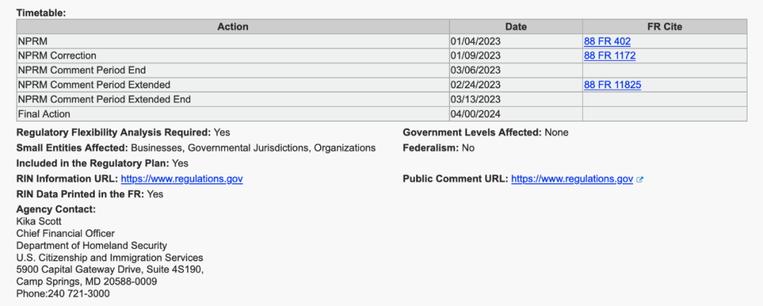 根据美国移民局的最新消息,移民局收费涨价的拟议法规已于1月8日上报给白宫预算管理办公室(OMB)进行审阅: